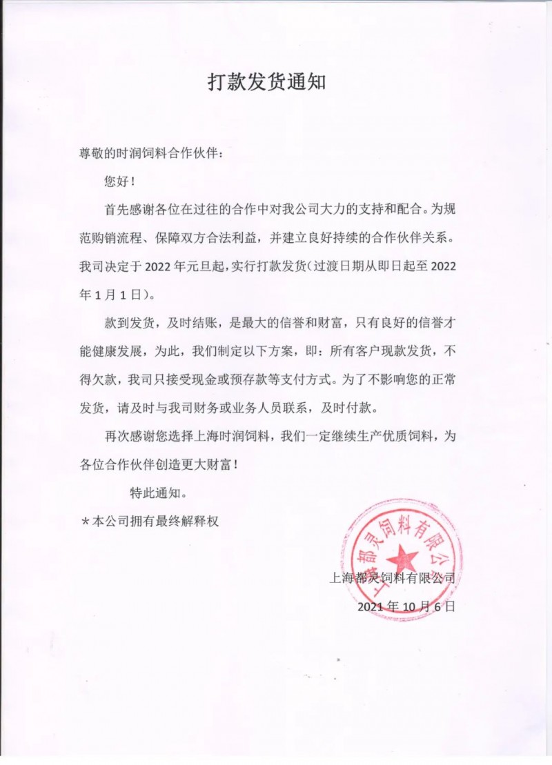 關於2022元旦(dàn)後 打款(kuǎn)發貨通知(zhī)