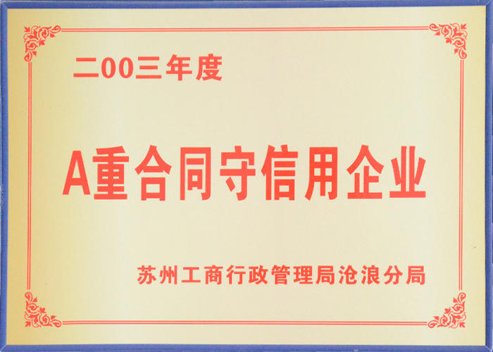 A重合(hé)同守信用企業--蘇州工商行政管理局滄(cāng)浪分局-榮譽資質-臥螺離心機-分離機-離心機廠家(jiā)-蘇州17.c-起草网登录入口機械製造有限公司