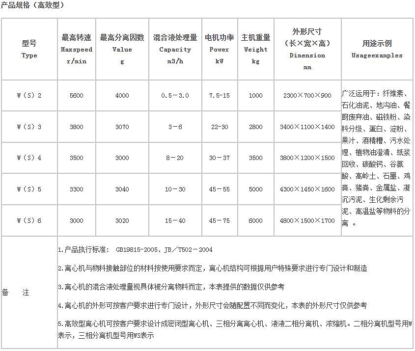 臥(wò)式(shì)沉降自動卸料(liào)離心機與標準(zhǔn)型臥式(shì)螺旋卸料沉降離心(xīn)機的工作原理相同,其主要區別是:轉鼓的長徑比達1:4.5以上,沉降分離的液(yè)池深度被特別加大,進入轉(zhuǎn)鼓的物料在螺旋筒體內被預加速,離(lí)心(xīn)機分離效率明(míng)顯提高,單位處理量的能耗(hào)得到降低(dī)。高效離心(xīn)機主要適用於含固(gù)量較低、固相物(wù)較柔軟、自然沉降比較困難的物料。W係列離心機(jī)可作濃縮機使(shǐ)用。W係列離心機結構稍作改動可由二相離心機變為三相離(lí)心(xīn)機——WS型離心機(jī)