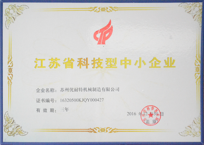 江(jiāng)蘇省科技型中小企業-榮(róng)譽資質-臥螺離心機-分離機-離心機廠(chǎng)家-蘇州(zhōu)優(yōu)耐特機械製造有限公司